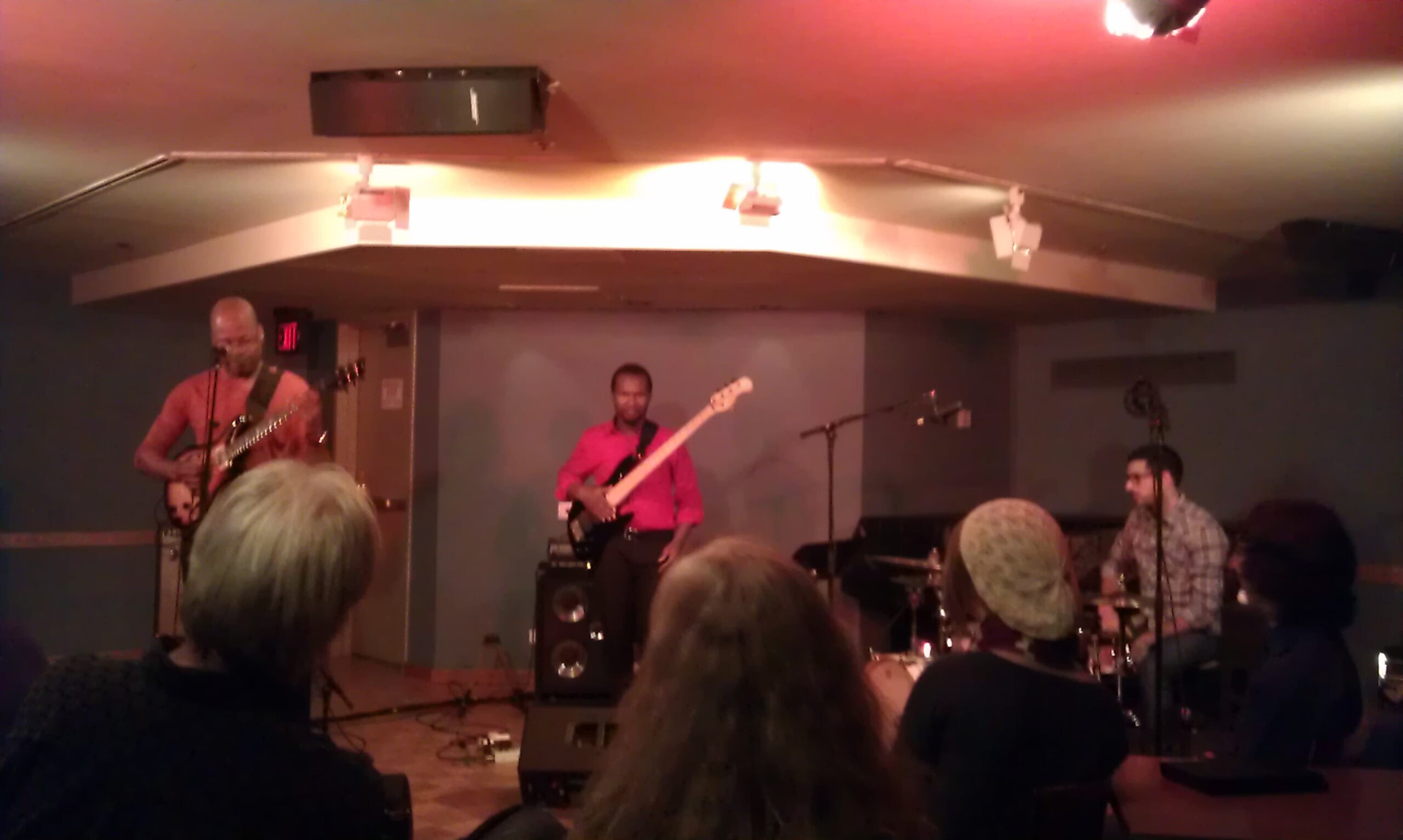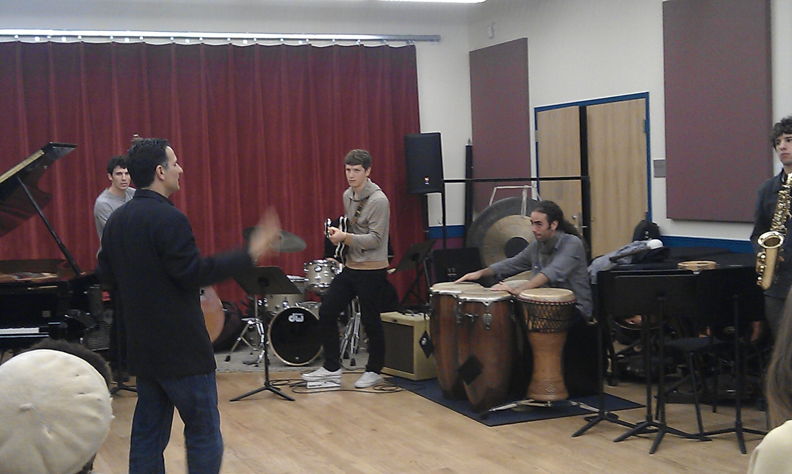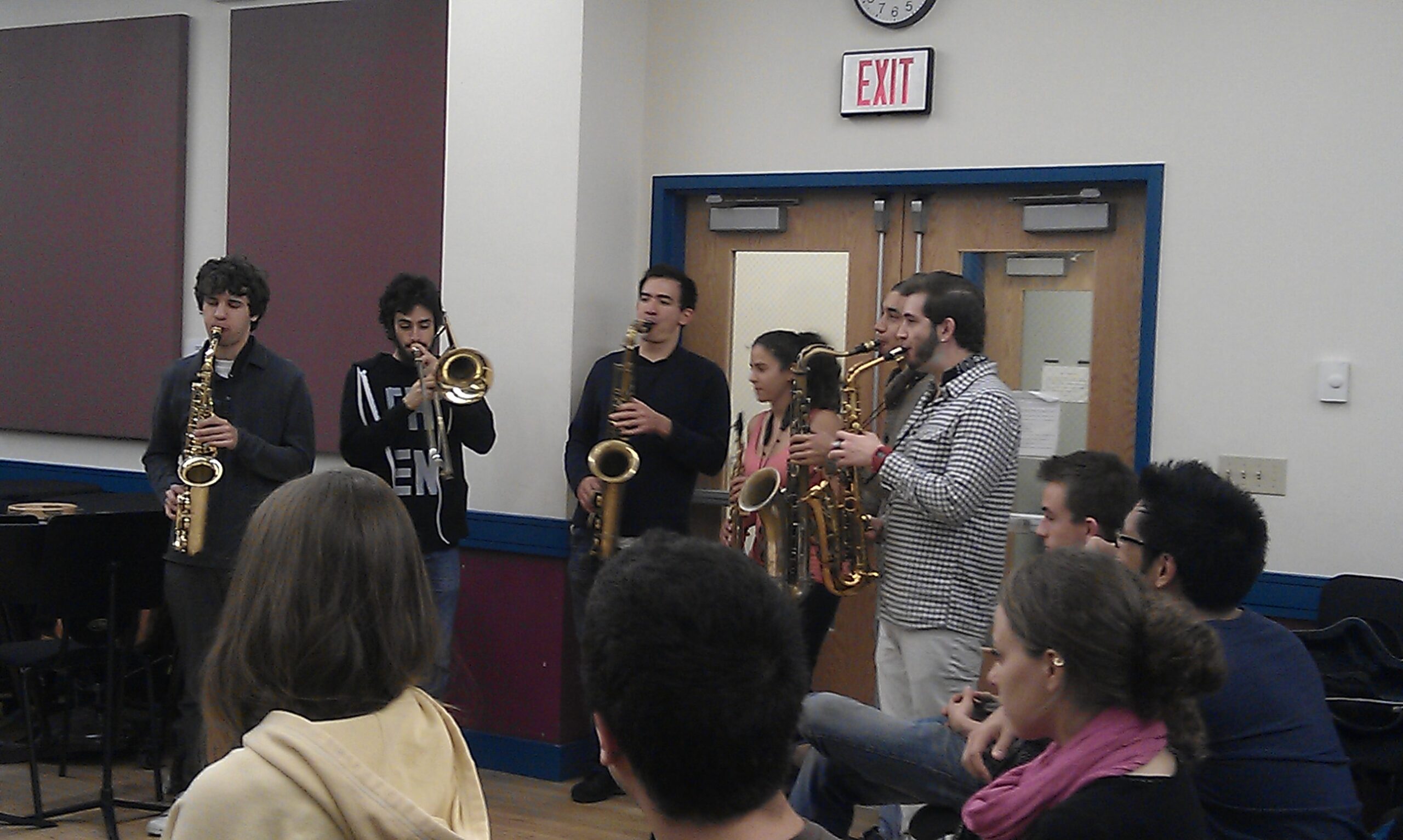 Woensdagochtend (10 oktober) had ik de bus terug naar Boston en kwam ik net op tijd voor het laaste half uurtje van Herman Hamptons klas. De jongens uit dat ensemble zijn super, en ik heb het gevoel dat ik meer met ze moet doen. Dat gaat komen. We doen instrumentale nummers zoals Jazz crimes van Joshua Redman, peace van Horace Silver en Jingles van Montgomery. Daarna ging ik snel door naar de workshop voor Global Jazz en toen naar het concert van Marco Pignataro, Marcello Pellitteri, George Garzone en Riccado del Fra. Daarna ben ik als een malle naar Scullers gefietst. Ik weet niet meer precies waarom, maar iets in me voelde dat ik moest gaan. Ik arriveerde bij het laaste nummer van Donny McCaslin en Jason Lindner. Geweldige muzikanten, wat een energie. Ik had nog steeds mn tas bij me, de NYC rugzak… Ik werd voorgesteld aan Jasons neef en diens vrouw we dronken wat. Daarna heb ik met Jason nog een paar uur gepraat en wat tv gekeken (waaronder “boer zoekt vrouw” op uitzending gemist op de ipad, in het kader van de internationalisering..).