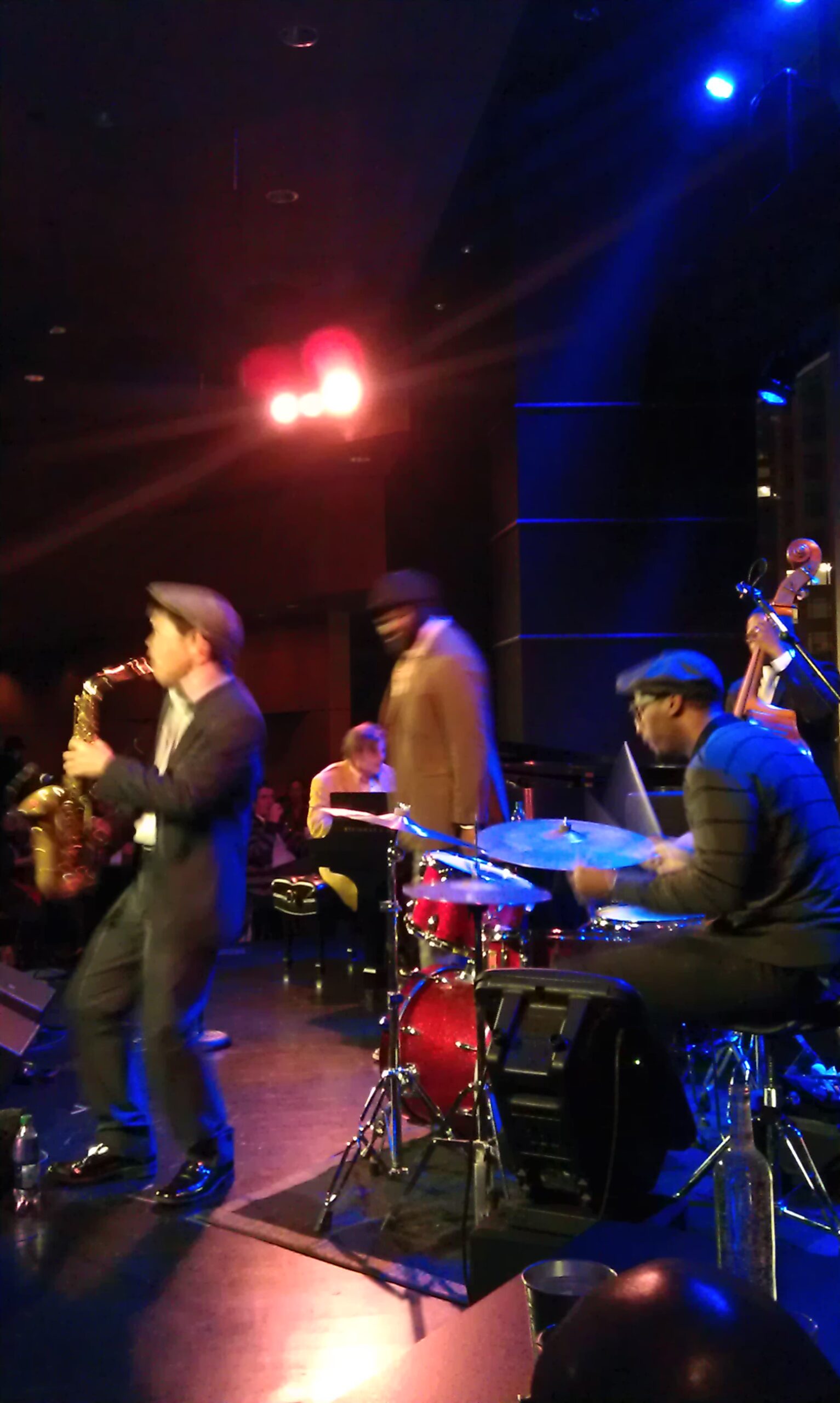 Joanna moest naar Smalls en Ashley, Massimo en ik gingen chocolademelk drinken voordat ik met Ashley naar Dizzy’s jazzclub ging. We hebben nog geprobeerd om mijn fiets in zn auto te stoppen maar desondanks de hilariteit was t toch niet mogelijk…ach, ik fiets graag. Bij Dizzy’s voegde Joanna zich weer bij ons en zagen we t optreden van Gregory Porter, een zanger met een hele sterke stem, wat een energie. Ik werd voorgesteld aan de manager van Dizzy’s en daarna gingen we weer verder. De avond was immers nog niet afgelopen en het was een soort jazz marathon vandaag. Het concert dat daarop volgde was van Becca Stevens in the Jazz Gallery. Zij is een van de populairste jazz/songwriters van het moment. Mooie liedjes, op gitaar, ukelele en zang. Ik moet ook maar weer liedjes gaan schrijven. 😉