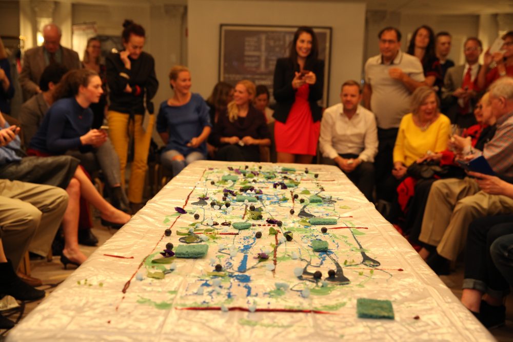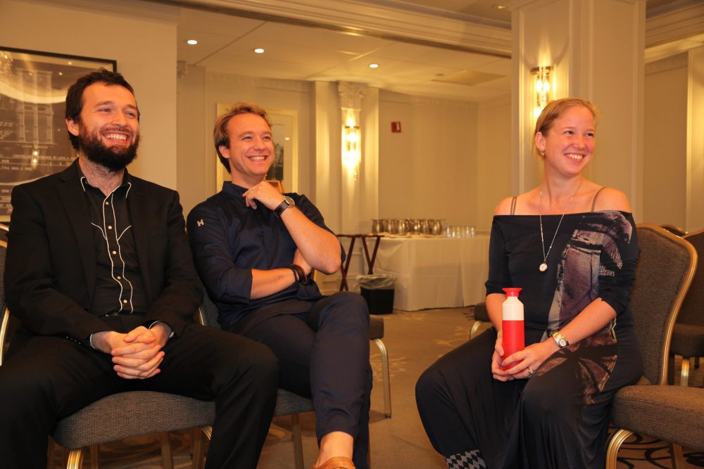 And… the tickets were sold out within an hour! A hundred people came that night to The Warwick Hotel to celebrate De Stijl, meet the mayor and of course see what ChocoJazz is all about. I asked my longtime Berklee friend and bass player Max Ridley to come join us at this show, and having played lots of free jazz with him at the Lilypad in Boston before, I knew he would be a natural. We performed four paintings with the colors Yellow, Blue, Red and Black & White and played to these colors. Max’ bass filled up the room as my sounds inspired Teddy to create his edible paintings, which everybody -kinda hesitant at first- got to eat afterwards. It was a great night we got to inspire a lot of people and of course met the mayor!
