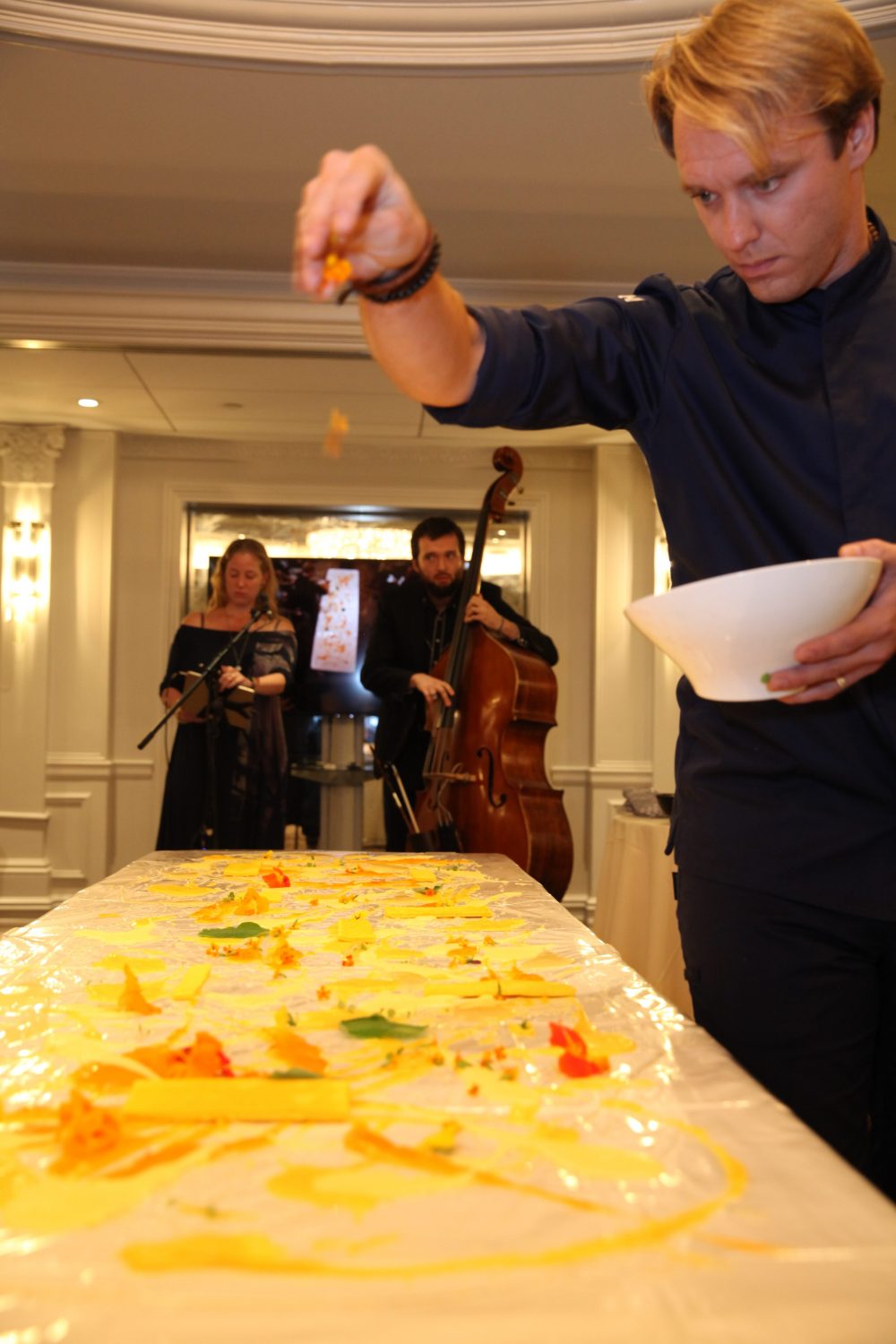 Thank you Mayor of The Hague Pauline Krikke for attending our show and thank you Netherland Club of New York for hosting. I would also like to thank Koppert Cress USA at Long Island for arranging the beautiful edible flowers and cresses, Le Nouveau Chef for Teddy’s Chefs clothing and Original Beans for providing the most stunning chocolate were everybody got crazy over! And of course my dear friend Max Ridley for coming over to New York, blowing everybody including me away, having a few laughs and then grabbing a 4AM bus back to Boston..Musicians life..