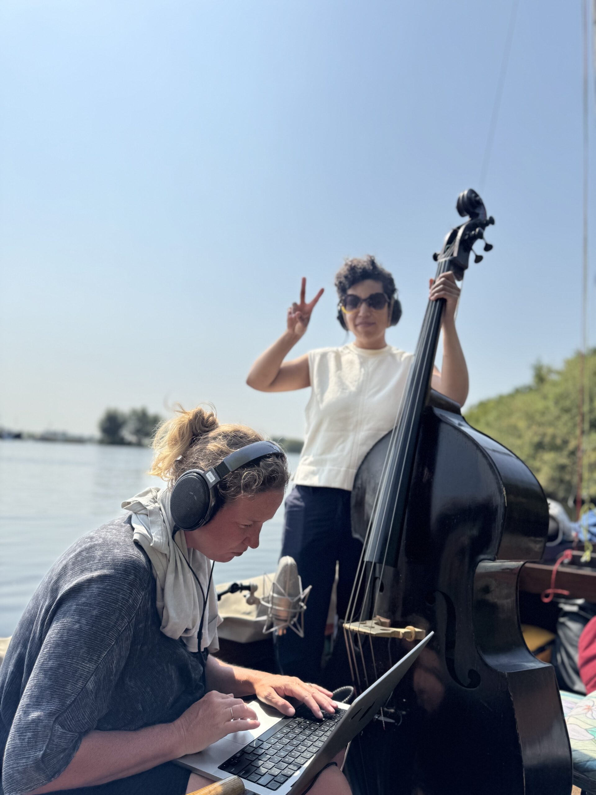 One highlight was when bassist Adinda Meertins joined us on the tiny wooden boat to record two tracks on the Braasem Lake. Little birds even chirped along with her bass lines.
