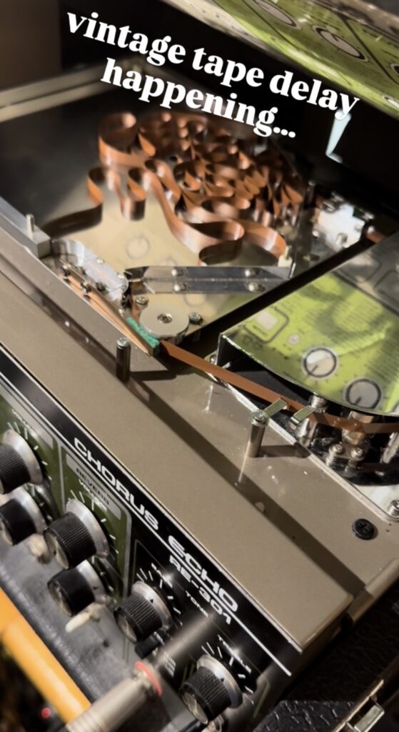 I’m spending time in his studio at Sear Sounds NY, where artists like Paul McCartney, Norah Jones, David Bowie, Patti Smith, and Björk have recorded. Watching Jeremy work, almost entirely in analog, has been deeply inspiring. He ran the sound through a real tape delay – see the video here. Hearing those echoes felt like time folding in on itself. We have a few more sessions coming up, and I can’t wait to share it with you soon!