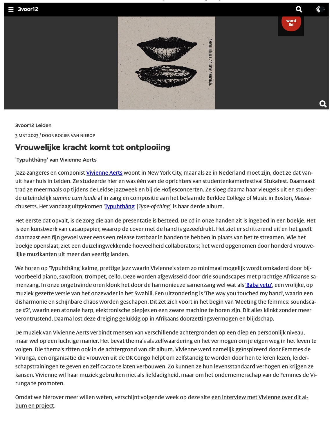 · voice Vivienne Aerts · guitar Camila Meza · duduk Inna Dudukina · harp Margaret Davis · cajon Ivanna Cuesta Gonzalez · bass Adinda Meertins · harmonica Hermine Deurloo
